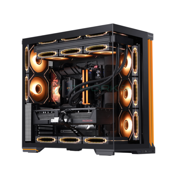 კომპიუტერის ქეისი: Segotep Infinite 5 Pro - Mid Tower, ATX, Desktop Gaming PC Case, Panoramic Tempered Glass, Up to 360mm Radiator Support, Type-C - with 4x120mm ARGB Fans (Black)