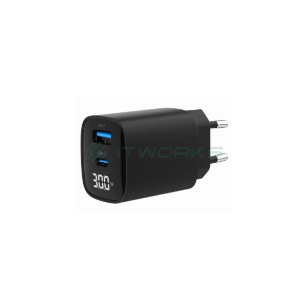 Gembird TA-UC-PDQC30LCD-BK-01 LCD 2 Port 30W Fast Charger
