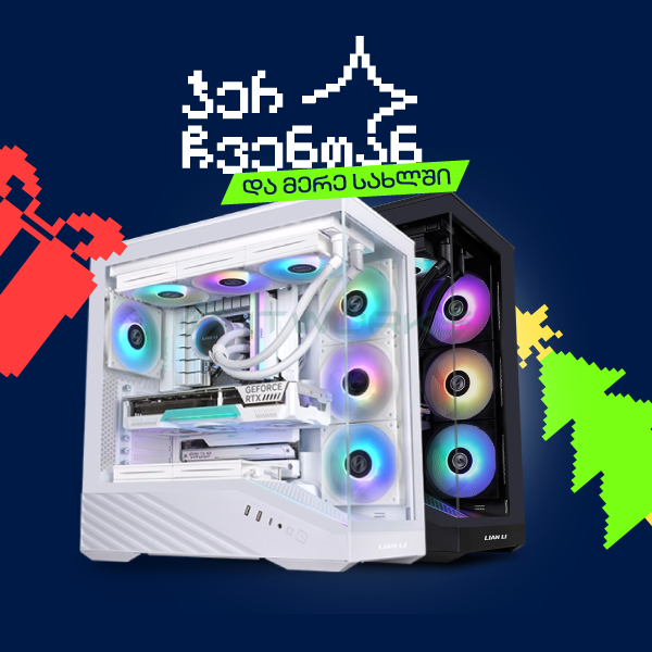 სათამაშო - სარენდერო კომპიუტერი TOP ბრენდების კომპონეტებით, R7 7800X3D პროცესორით და RTX 5070TI ვიდეო ბარათით