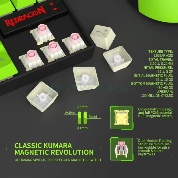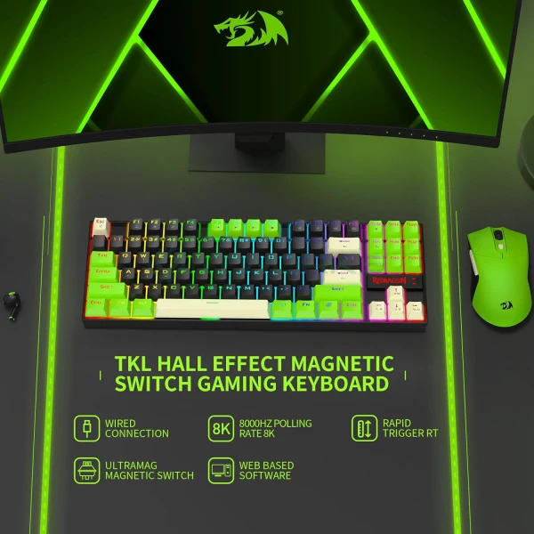 | ბრენდი | მოდელი | Redragon K552BGC-M Kumara 8K Wired Mechanical Keyboard with RT Magnetic Switch (Black/Green) |