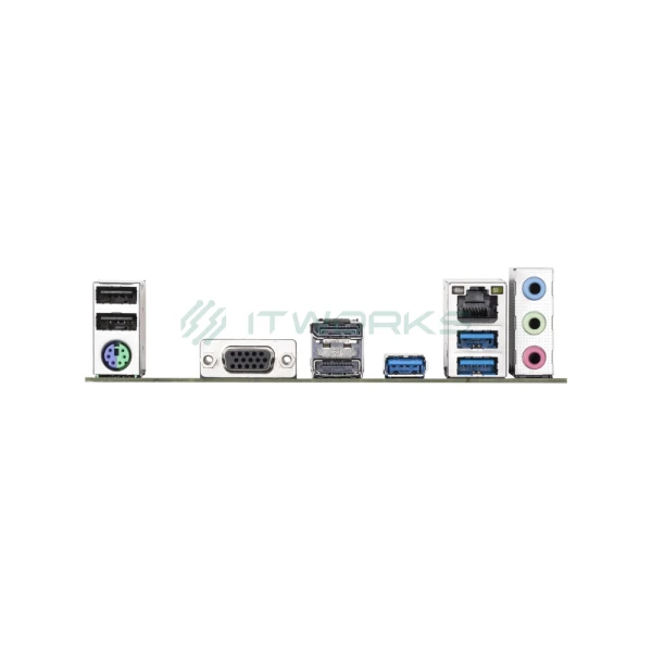 | შემომავალი პორტები უკანა პანელზე | 2 x USB 2.0/1.1 ports 1 x PS/2 keyboard/mouse port 1 x D-Sub port 1 x DisplayPort 1 x HDMI port 3 x USB 3.2 Gen 1 ports 1 x RJ-45 port 3 x audio jacks |