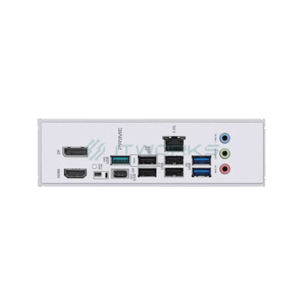 | შემომავალი პორტები უკანა პანელზე | 1x USB 20Gbps port (1 x USB Type-C® with DP Alt mode) 1 x USB 10Gbps port (1 x Type-A) 2 x USB 5Gbps ports (2 x Type-A) 4 x USB 2.0 ports (4 x Type-A) 1 x DisplayPort 1 x HDMITM port 1 x Realtek 2.5Gb Ethernet port 3 x Audio jacks |