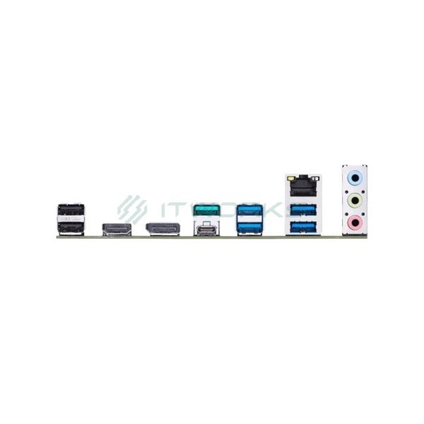 | შემომავალი პორტები უკანა პანელზე | 1x USB 3.2 Gen 2x2 port (1 x USB Type-C®), 1x USB 3.2 Gen 2 port (1 x Type-A), 4x USB 3.2 Gen 1 ports (4 x Type-A), 2x USB 2.0 ports (2 x Type-A), 1x DisplayPort 1 x HDMITM port, 1x Intel® 1Gb Ethernet port, 3x Audio jacks |
