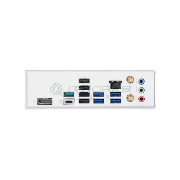შემომავალი პორტები უკანა პანელზე 1 x USB 20Gbps port (1 x USB Type-C® with DP Alt mode) 1 x USB 10Gbps port (1 x Type-A) 4 x USB 5Gbps ports (2 x Type-A) 4 x USB 2.0 ports (4 x Type-A ) 1 x DisplayPort 1 x Wi-Fi module 1 x Realtek 2.5Gb Ethernet port 3 x Audio jacks