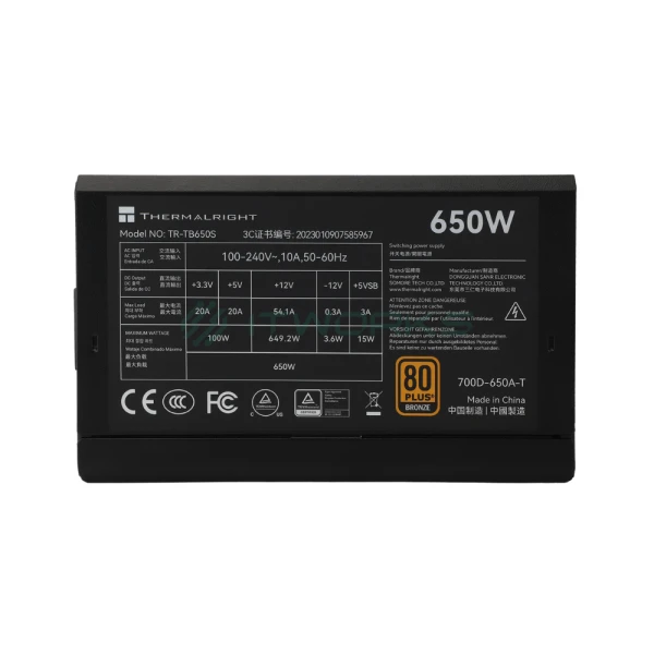| ბრენდი | მოდელი | Thermalright 650W 80 Plus Bronze (TR-TB650S) |